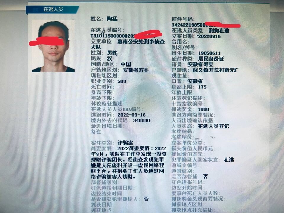 查询在逃/犯罪记录,需要提供身份证号。